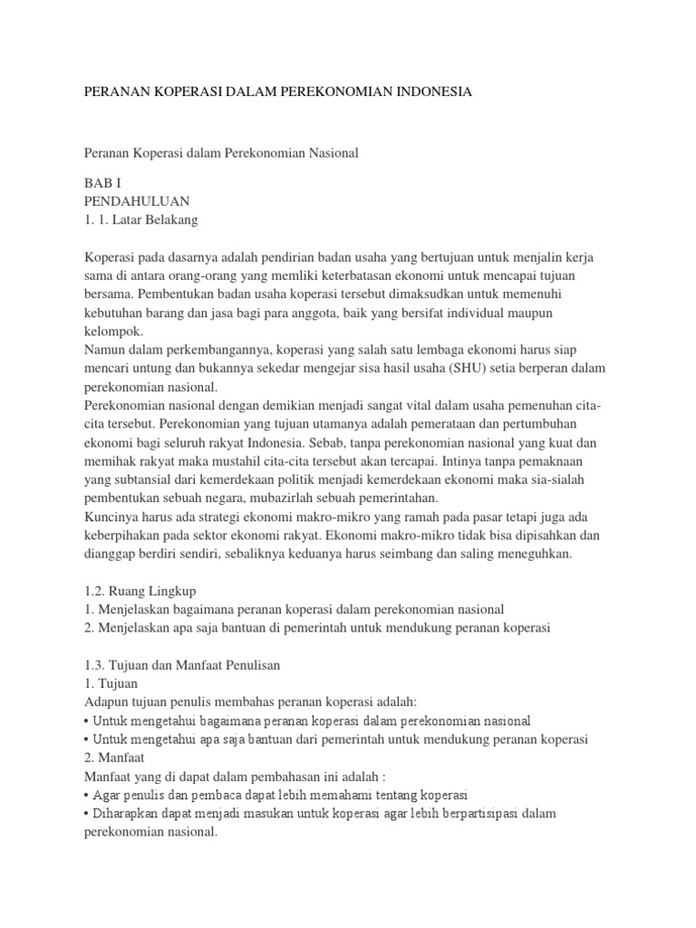 Peranan Koperasi Dalam Perekonomian Indonesia