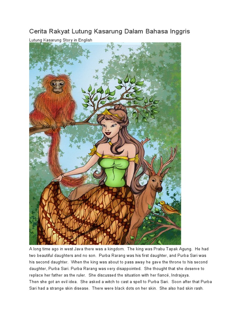 Cerita Rakyat Lutung Kasarung Dalam Bahasa Inggris Dan Keong Mas