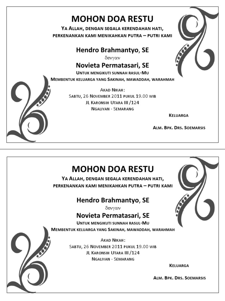 Jump to page. Halaman ini berisi ulasan mengenai download undangan kotak nasi pernikahan doc yg. Cara membuat ucapan tasyakuran pernikahan dengan ms word sangatlah mudah setelah kamu berhasil.